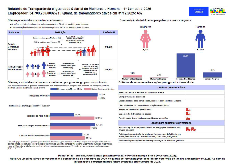 Relatório de Transparência e Igualdade Salarial 1 Sem. 2026