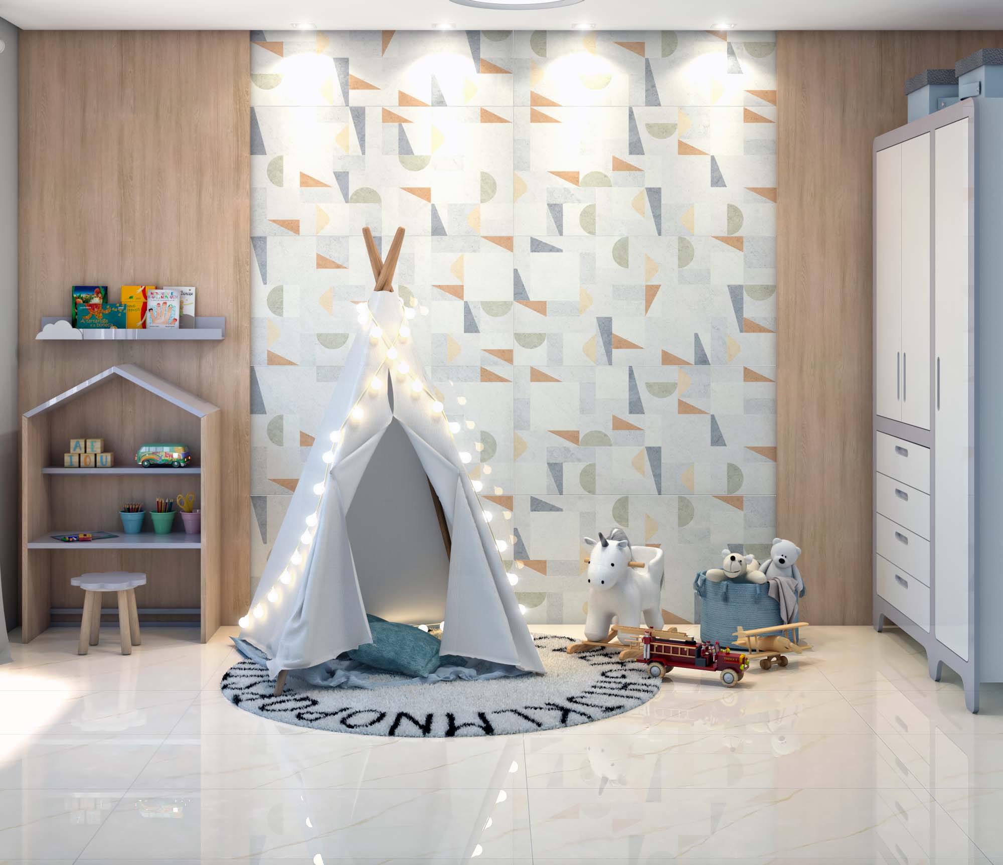 O Arcade conta com 4 faces, está disponível no acabamento tanto polido quanto acetinado – no formato 56x113 e é indicado para uso como piso ou parede em todos os ambientes residenciais.